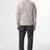 mit 2x1-Rippung am Halsausschnitt und an den Bündchen.