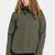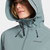 Die Jacke besitzt eine verstellbare angeschnittene Kapuze,
